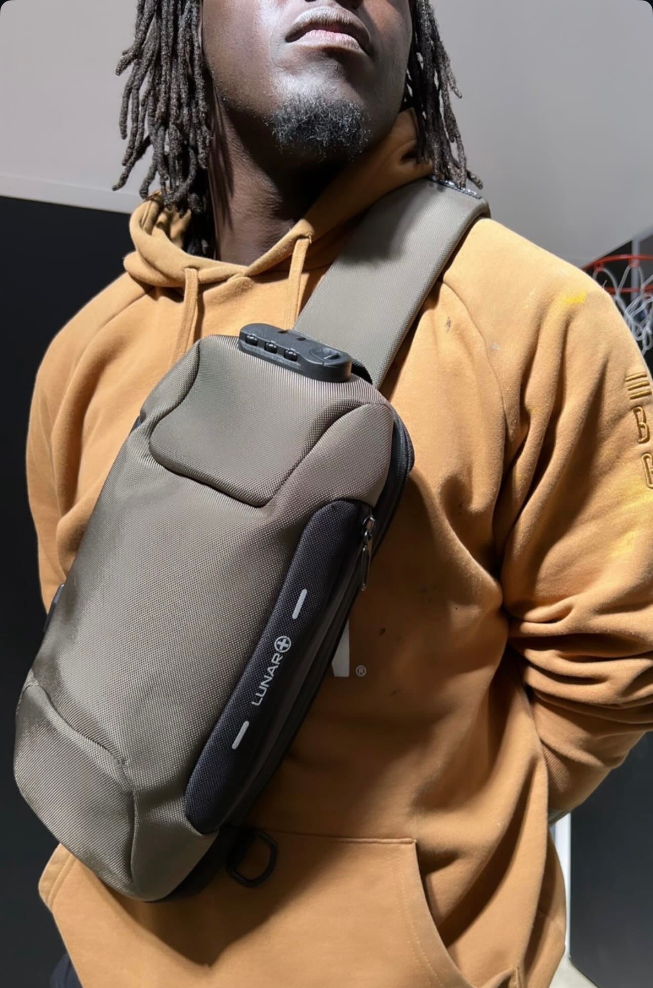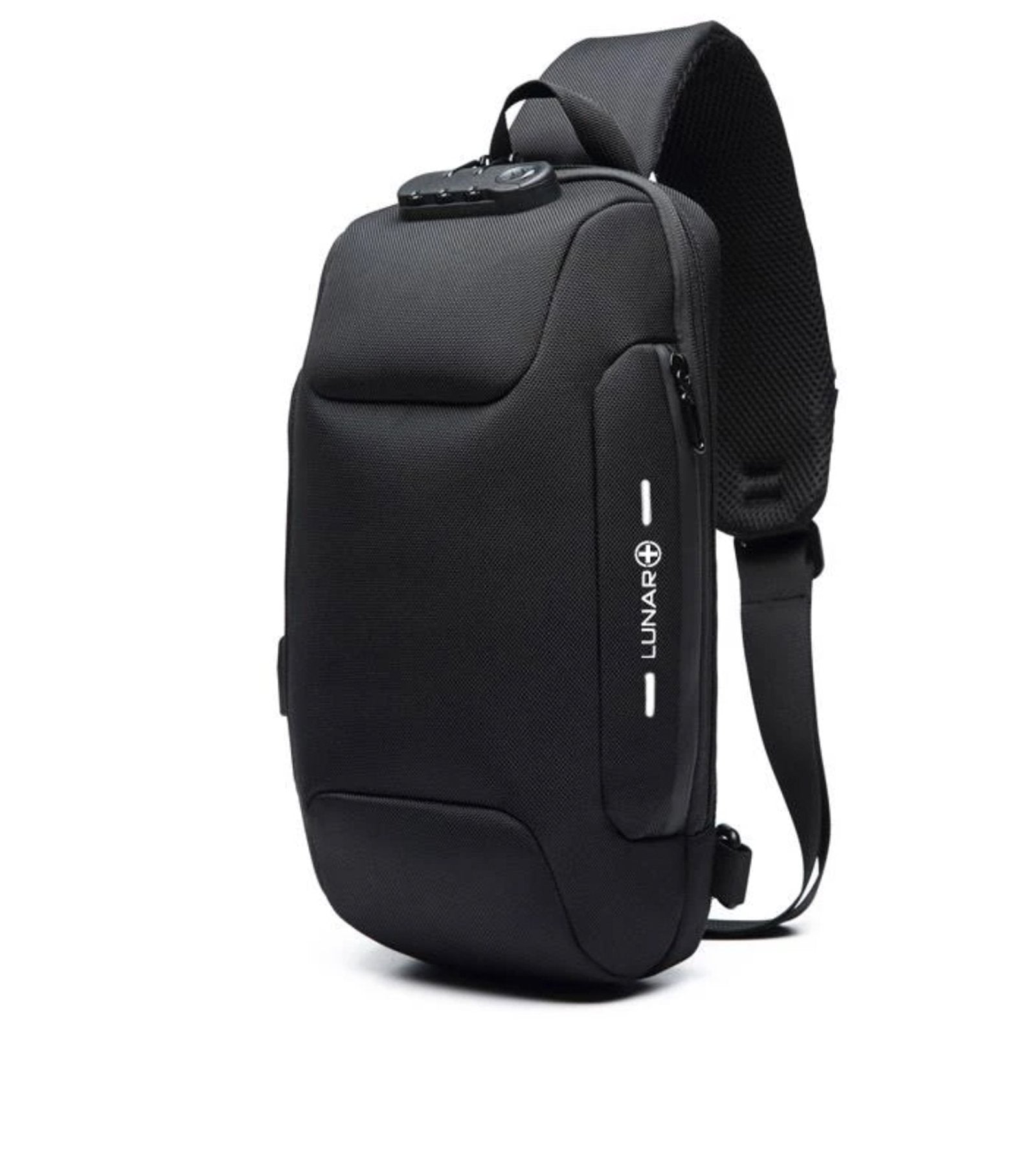 The Lunar Plus Escape Pod is a locking sling bag with a built-in USB charging port. It's perfect for day trips, the gym, and to secure expensive items like drones and cameras while you're on the go.
